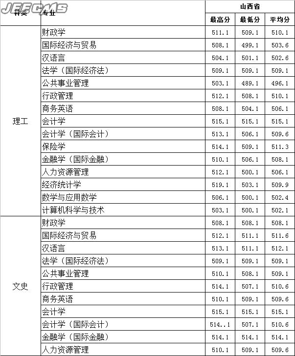 云南財(cái)經(jīng)大學(xué)2015年山西省錄取情況一覽表