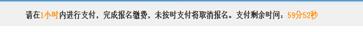 第二步:信息無誤后,點擊上圖中“在線支付”按鈕,進行網上繳費(網上支付的時限為網上報名后1個小時內,超時系統(tǒng)自動取消訂單,考生本次報名無效)。在線支付目前只支持銀聯(lián)支付方式。