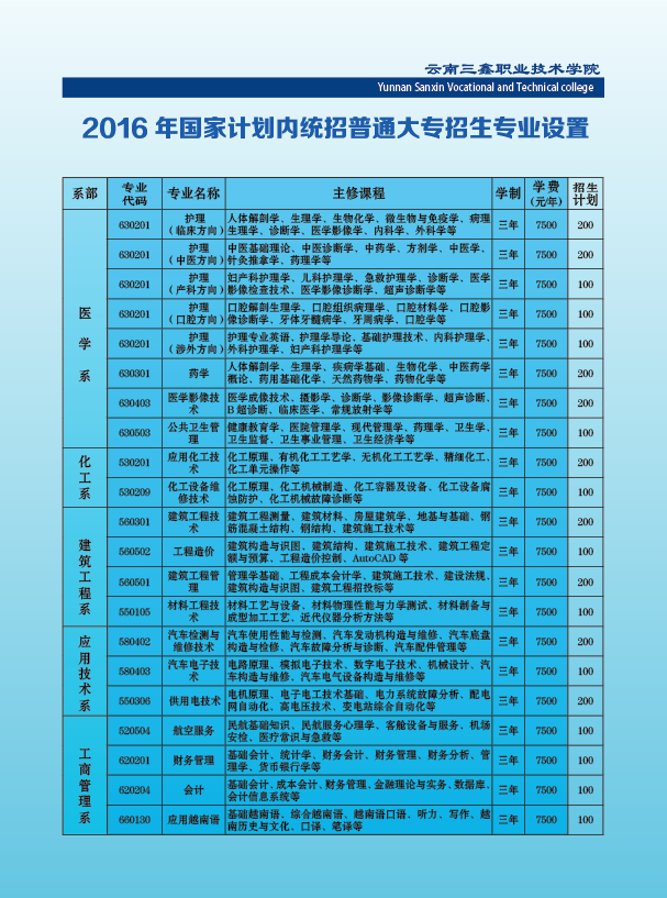 云南三鑫職業(yè)技術(shù)學(xué)院2016年招生簡(jiǎn)章