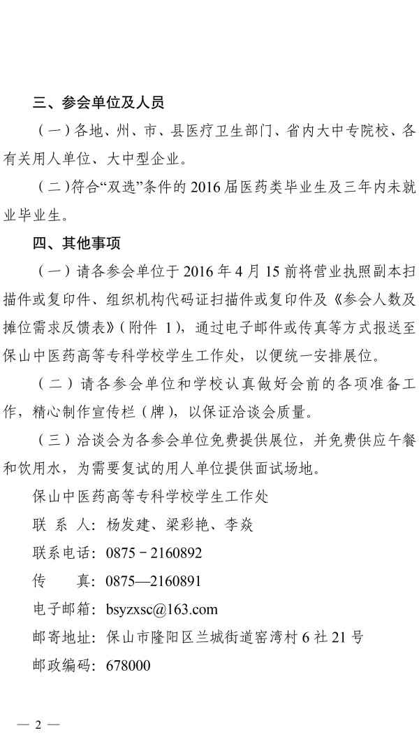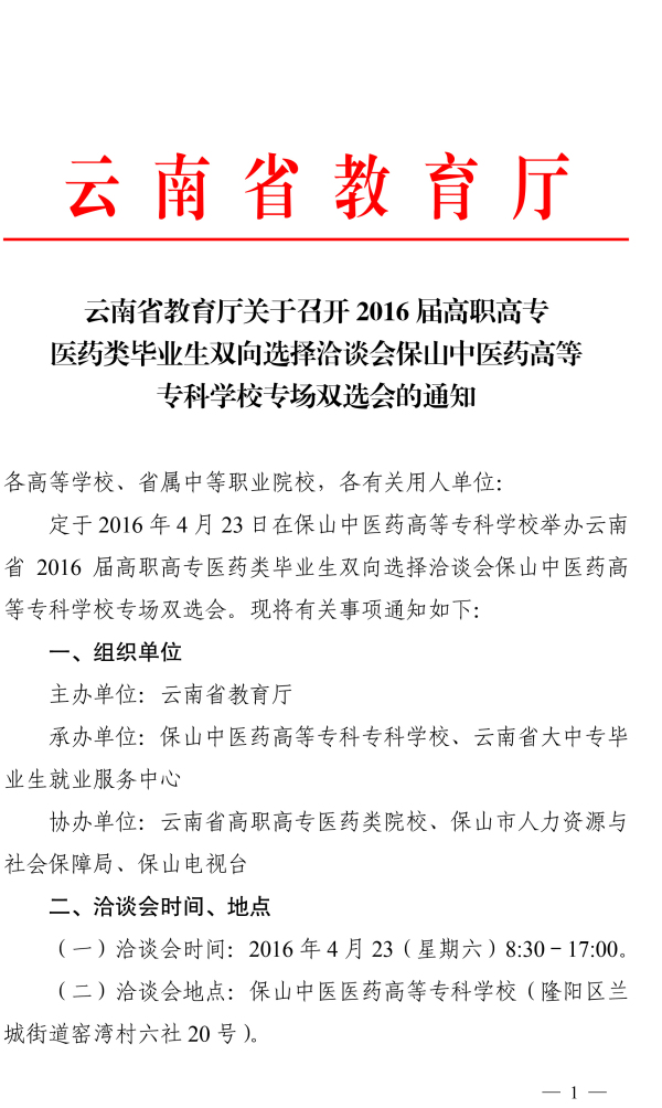 保山中醫(yī)藥高等??茖W(xué)校2016年專場(chǎng)雙選會(huì)