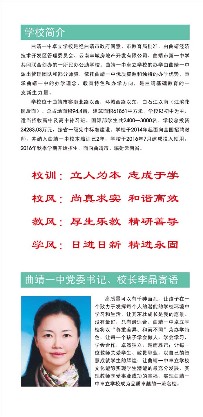 曲靖一中卓立學(xué)校2016年招生簡章