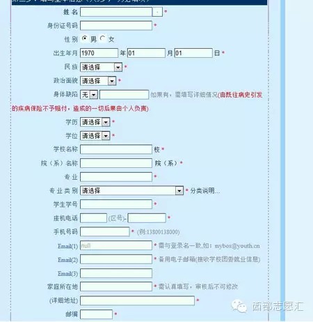 8.填寫個人經(jīng)歷。(http://west.youth.cn/zyz/user_reg4save.jsp?step=3),填寫完畢點(diǎn)擊下一步。