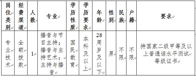 經鎮(zhèn)沅縣文體廣電旅游局研究,報鎮(zhèn)沅縣人民政府和普洱市人力資源和社會保障局批準,鎮(zhèn)沅縣廣播電視臺公開招聘電視播音(主持)工作人員1名。現將招聘有關事項公告如下: