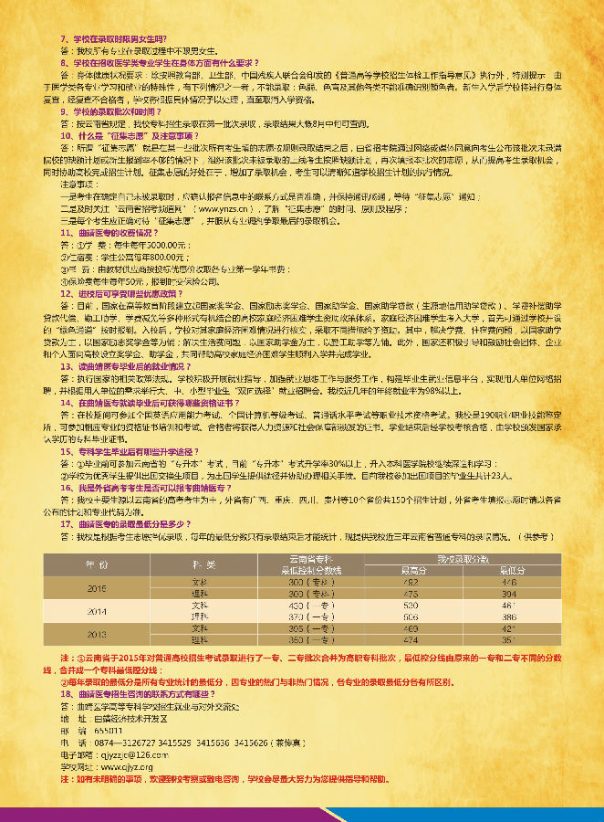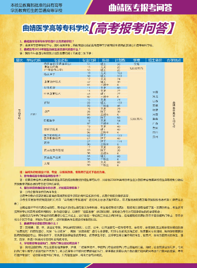 曲靖醫(yī)學(xué)高等??茖W(xué)校2016年高考報(bào)考問答