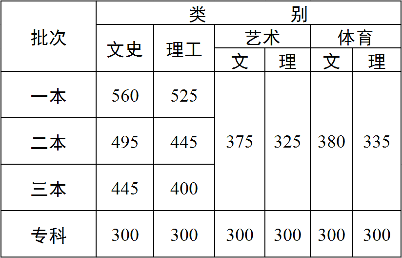 2016年云南省普通高校招生錄取最低控制分?jǐn)?shù)線