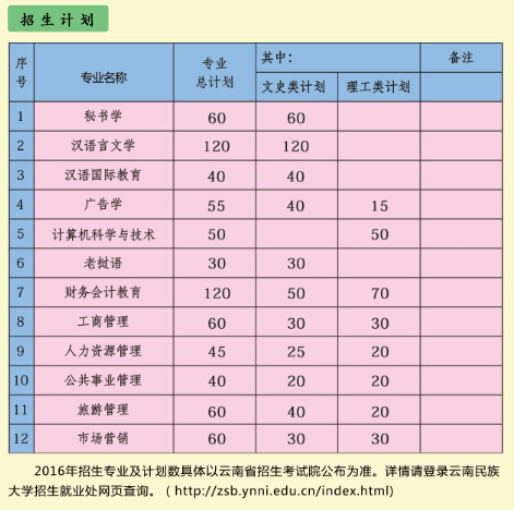 云南民族大學(xué)應(yīng)用技術(shù)學(xué)院(原云南民族大學(xué)文化學(xué)院)是云南民族大學(xué)為貫徹云南省教育廳《關(guān)于云南民族大學(xué)深化高職本科辦學(xué)體制機(jī)制改革的批復(fù)》(云教高﹝2011﹞35號)文件精神,進(jìn)一步適應(yīng)區(qū)域經(jīng)濟(jì)社會發(fā)展,深化應(yīng)用本科辦學(xué)體制機(jī)制改革,探索校企合作辦學(xué)新模式,培養(yǎng)適應(yīng)產(chǎn)業(yè)發(fā)展急需的應(yīng)用型創(chuàng)新人才而成立的公辦全日制綜合性應(yīng)用本科學(xué)院。學(xué)院實(shí)現(xiàn)了各專業(yè)教師、教學(xué)資源與云南民族大學(xué)本部共享,現(xiàn)有師資500余人,其中,教授、副教授103人,博士、碩士280余人,“雙師型”教師比例達(dá)到46.8%。根據(jù)社會需求,專業(yè)設(shè)置秘書學(xué)、漢語言文學(xué)、漢語國際教育、廣告學(xué)、財(cái)務(wù)會計(jì)教育、工商管理等12個應(yīng)用本科專業(yè),在校生達(dá)5000余人。