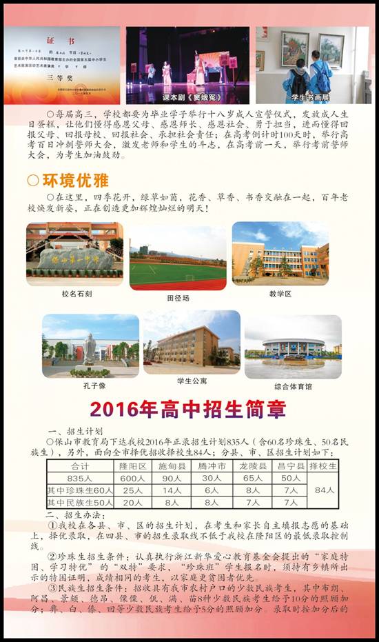 大理州永平縣第一中學(xué)2016年高一招生簡章
