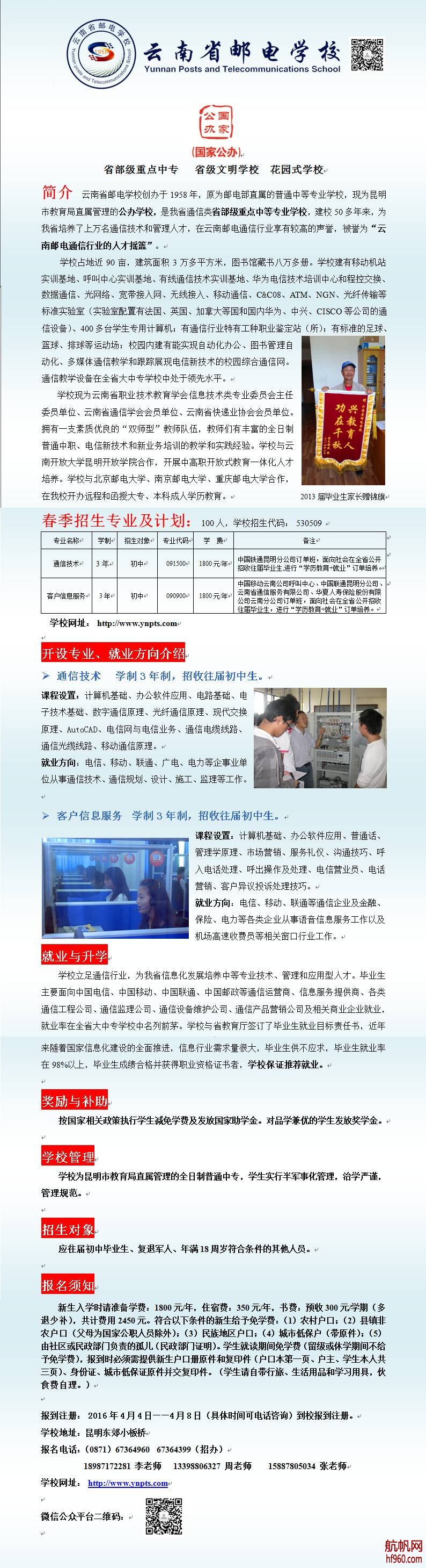 2016年云南省郵電學(xué)校春季招生簡(jiǎn)章