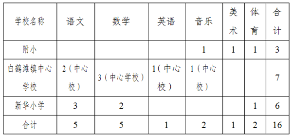3.報(bào)考小學(xué)教學(xué)崗位要求具有國(guó)民教育系列??萍耙陨蠈W(xué)歷,在我縣鄉(xiāng)鎮(zhèn)學(xué)校工作滿3年及以上(即2013年9月30日前參加工作);具有小學(xué)及以上教師資格。報(bào)考小學(xué)語(yǔ)文、數(shù)學(xué)崗位不限專業(yè),報(bào)考小學(xué)英語(yǔ)、體育、美術(shù)崗位需專業(yè)對(duì)口。
