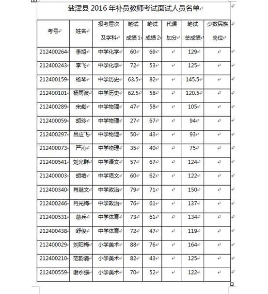 附件:《鹽津縣2016年補(bǔ)員教師考試面試人員名單》