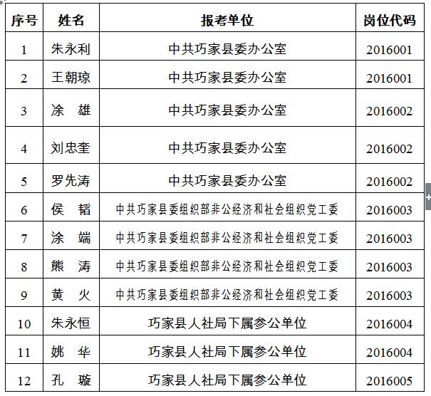 一、巧家縣2016年下半年縣直機(jī)關(guān)事業(yè)單位公開選調(diào)工作人員報(bào)名情況