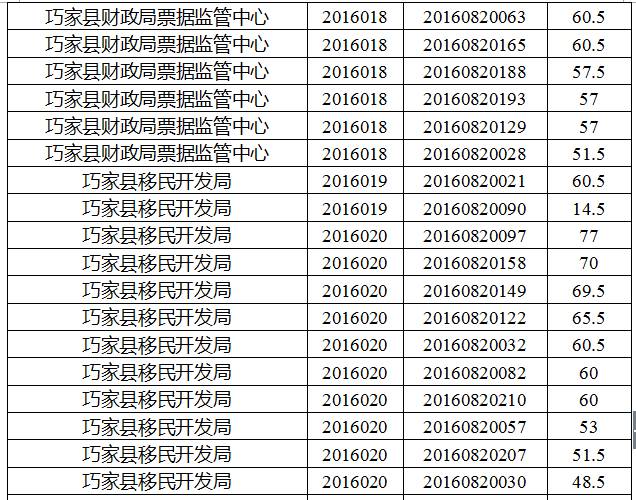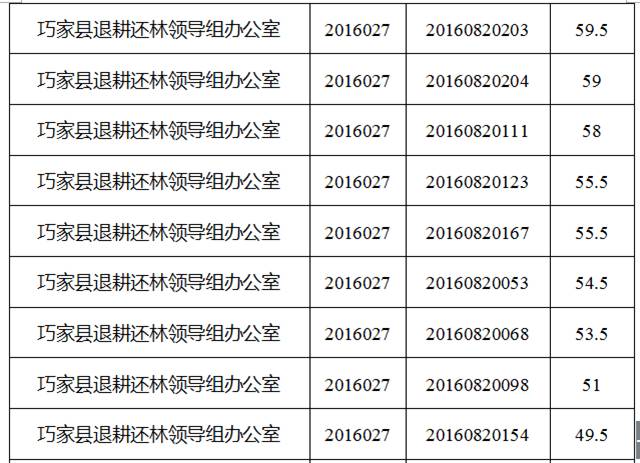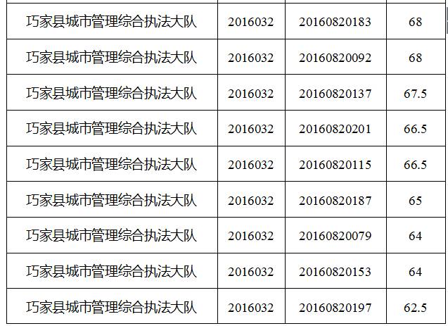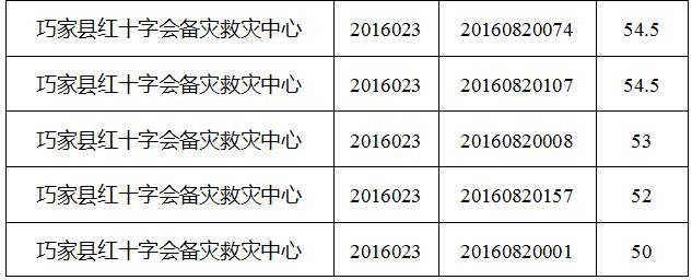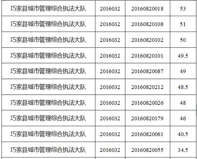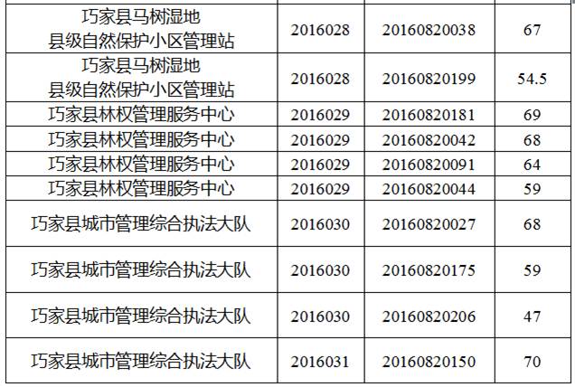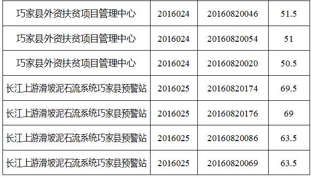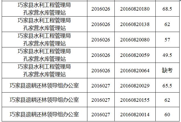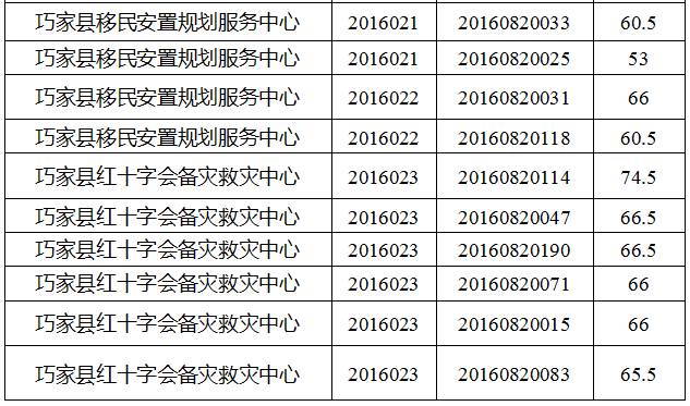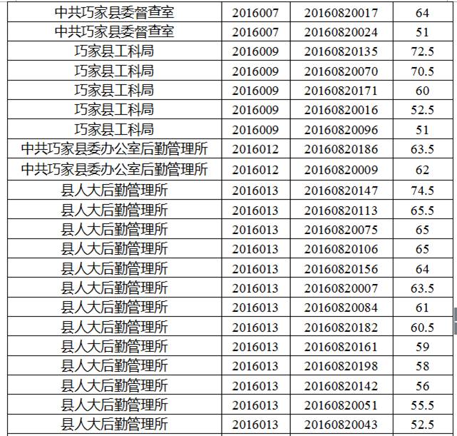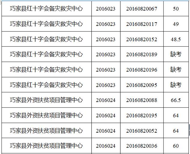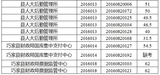 巧家縣縣直機(jī)關(guān)事業(yè)單位2016年下半年公開選調(diào)工作人員筆試工作已經(jīng)結(jié)束,現(xiàn)將筆試成績公告如下: