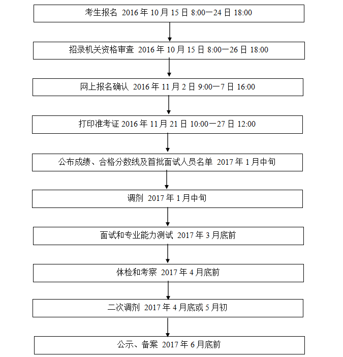 中央機關(guān)及其直屬機構(gòu)2017年度考試錄用公務(wù)員工作時間安排