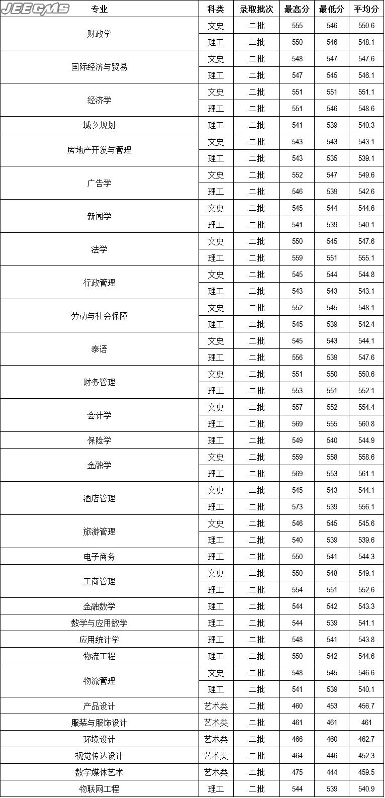 云南財經(jīng)大學(xué)2016年上海市錄取情況一覽表