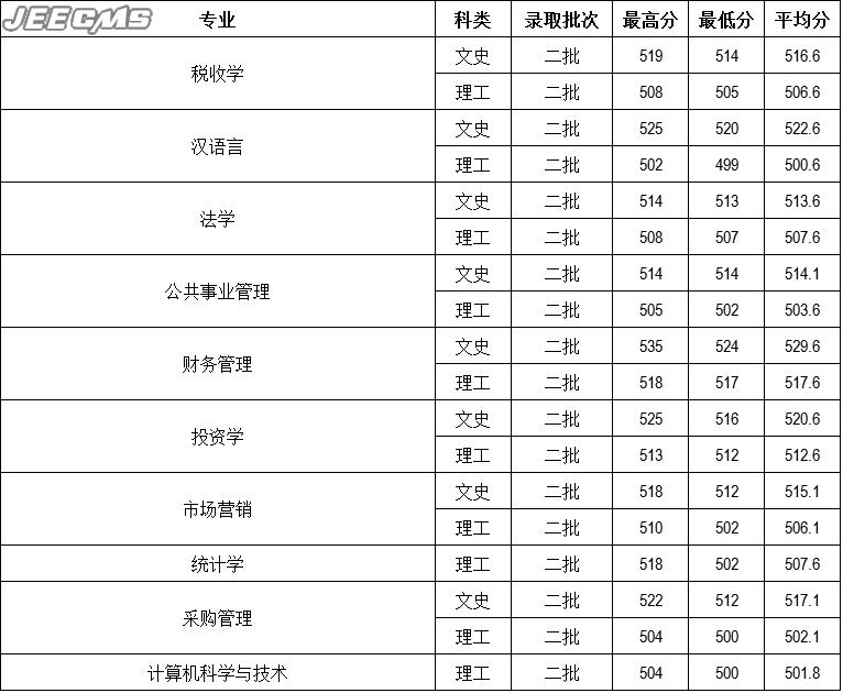 云南財(cái)經(jīng)大學(xué)2016年江西省錄取情況一覽表