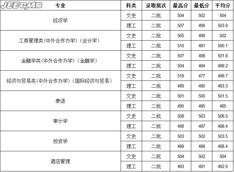 云南財(cái)經(jīng)大學(xué)2016年廣東省錄取情況一覽表