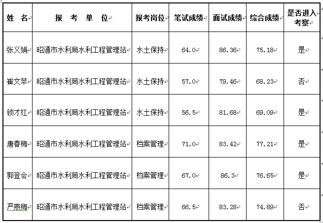 附件:昭通市水利局2016年事業(yè)單位公開(kāi)選調(diào)工作人員筆試面試成績(jī)