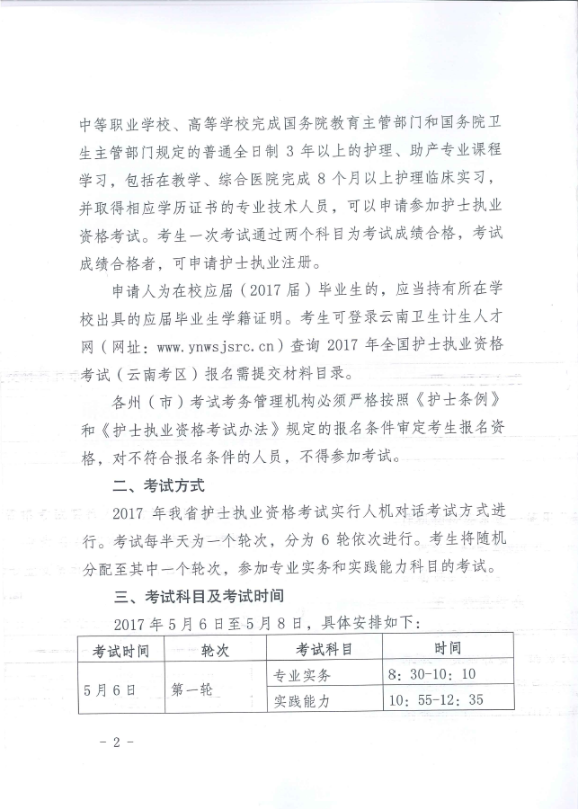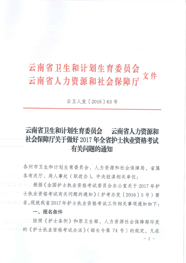 云南省2017年全省護士執(zhí)業(yè)資格考試通知