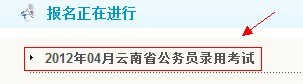 3、在“報(bào)名正在進(jìn)行”欄目中點(diǎn)擊相應(yīng)的考試名稱進(jìn)入報(bào)名頁(yè)面;