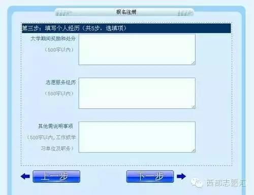 8.填寫個人經歷。填寫完畢點擊下一步。(見圖八)