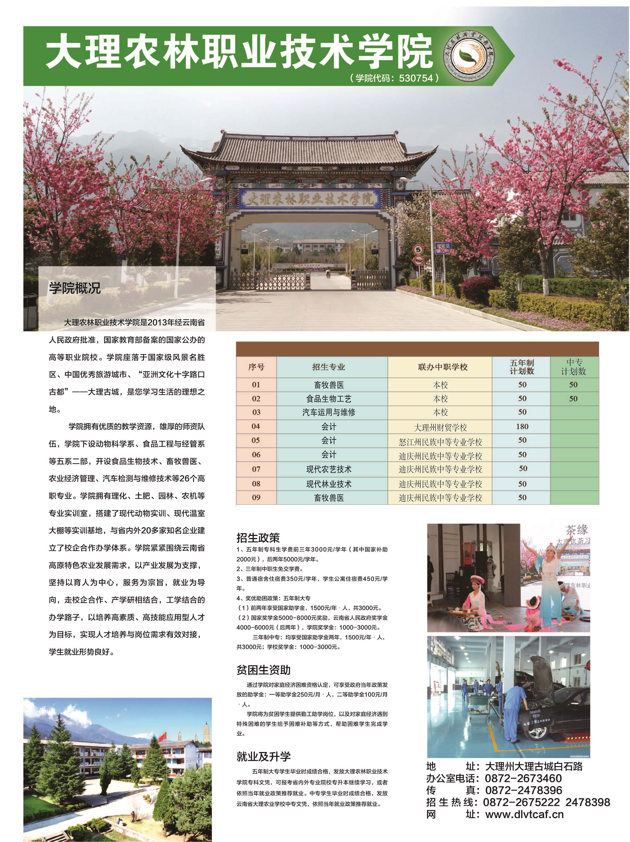 大理農(nóng)林職業(yè)技術(shù)學(xué)院2017年五年制大專招生簡章