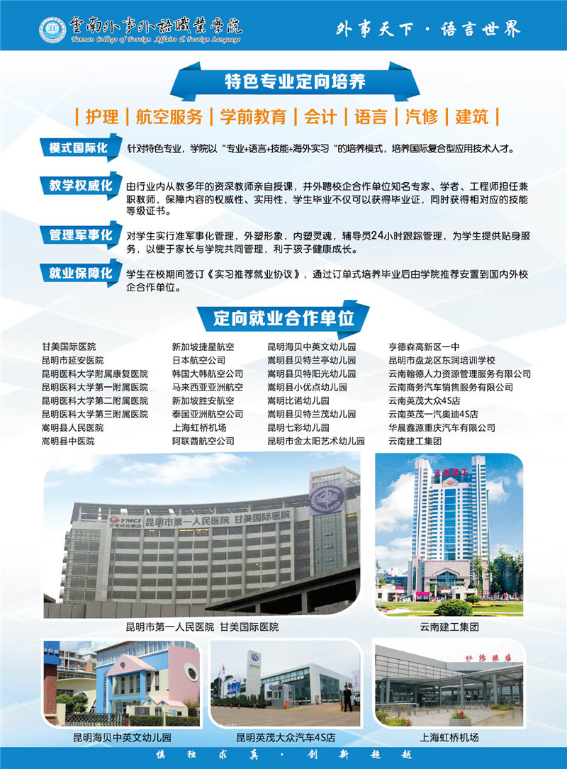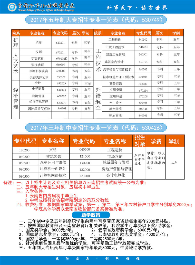 云南外事外語職業(yè)學院2017年五年制中專招生簡章