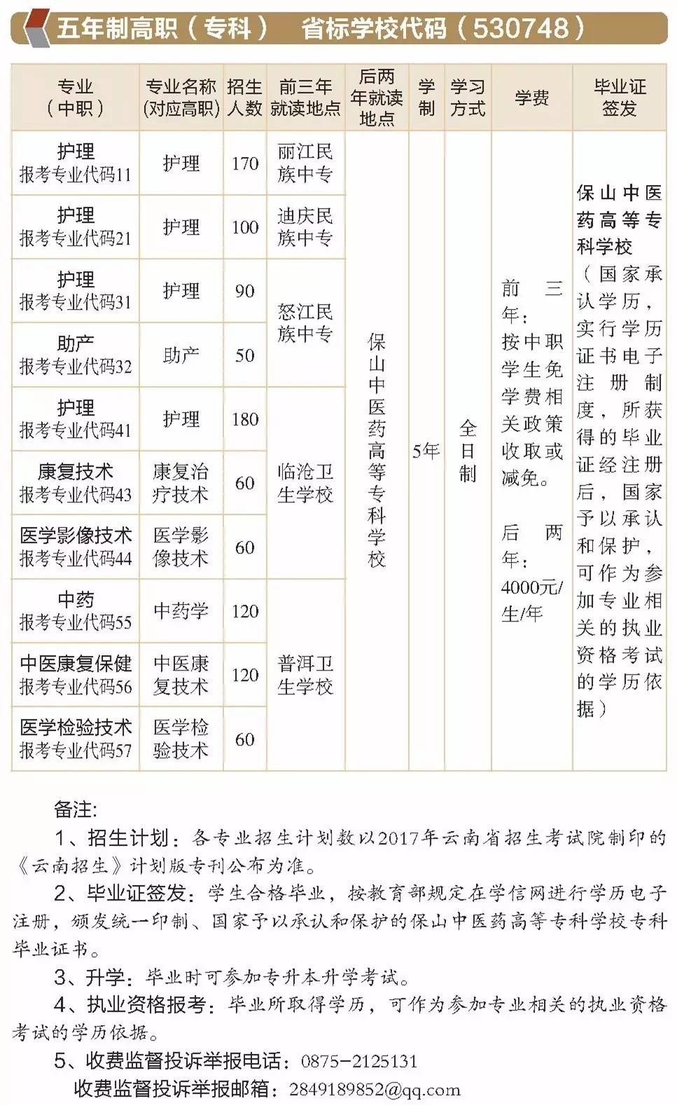 保山中醫(yī)藥高等??茖W校2017年報考指南