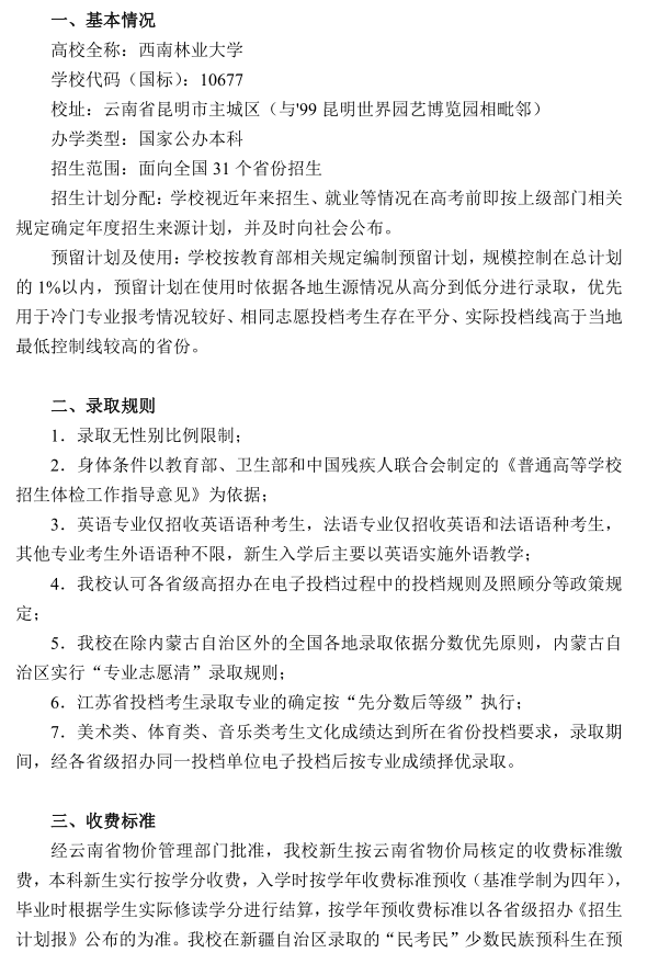 2025年西南林業(yè)大學(xué)普通本科招生章程