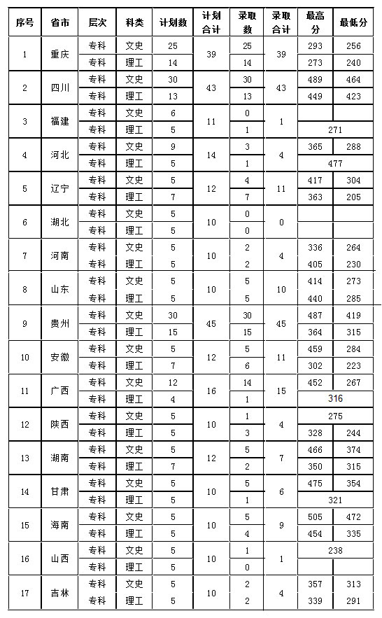 麗江師范高等專科學(xué)校2014年各省各類錄取分?jǐn)?shù)情況表 一、各省普通???/strong> 1、省外??莆氖?、理工類