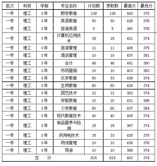 麗江師范高等??茖W(xué)校2014年各省各類錄取分?jǐn)?shù)情況表