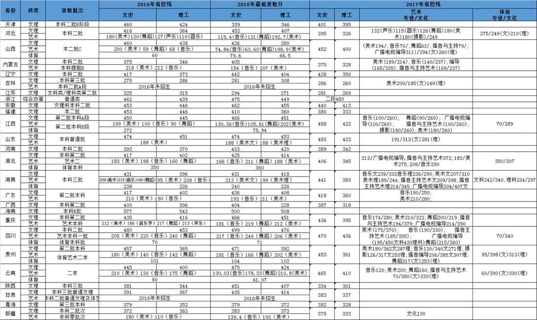 云南師范大學(xué)商學(xué)院2017年各省分?jǐn)?shù)線匯總