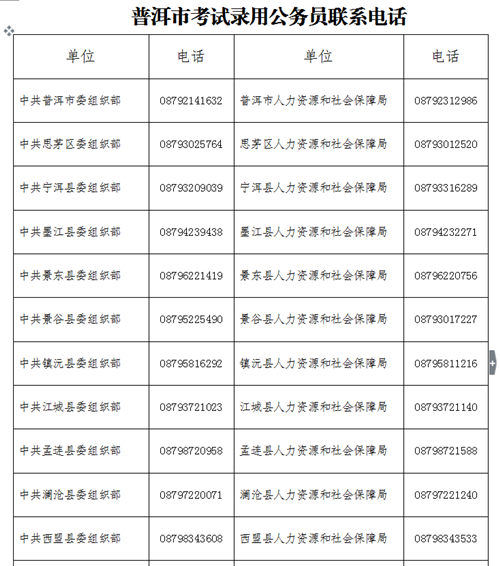 普洱市考試錄用公務(wù)員聯(lián)系電話