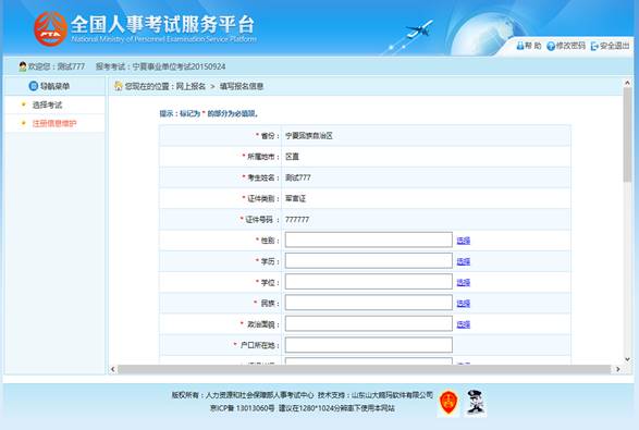 點擊“注冊”按鈕,進入考生注冊頁面,如下圖所示: