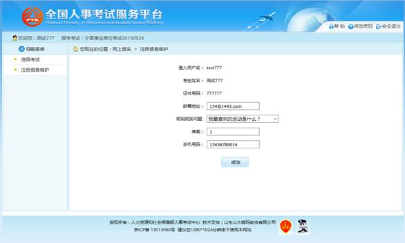 通過點擊系統(tǒng)導航菜單中“注冊信息維護”選項,可跳轉(zhuǎn)到修改注冊信息頁面,
