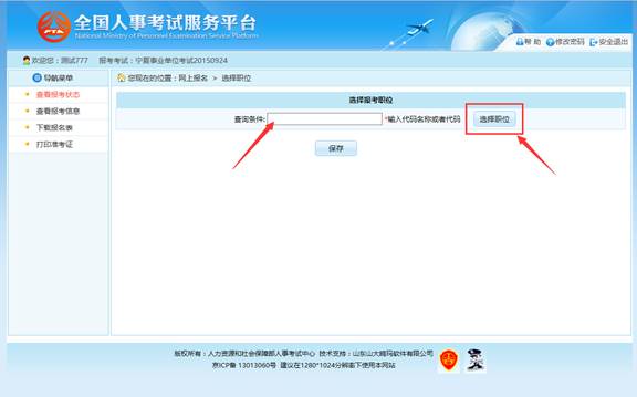 選擇相應的職位,點擊“保存”按鈕,提示保存成功,可以跳轉(zhuǎn)到報考流程頁面,