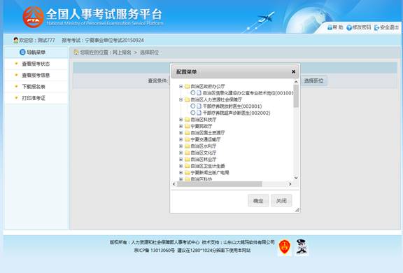 考生也可以點擊“選擇職位”按鈕,通過樹形菜單選擇對應的職位,如下圖所示: