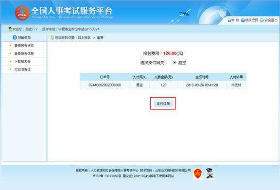 考生可以根據(jù)自己的情況選擇支付的網(wǎng)關,選擇完成后點擊“生成訂單”按鈕,