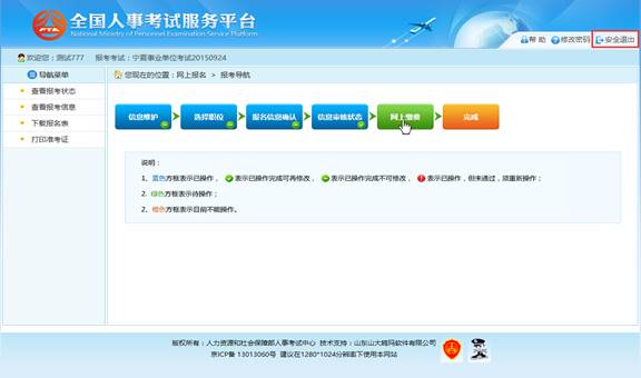 通過點擊“確認”按鈕,提示確認成功后跳轉(zhuǎn)到報考流程頁面,如下圖所示: