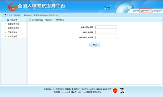 通過點擊系統(tǒng)右上角的“修改密碼”選項,可跳轉(zhuǎn)到修改密碼頁面,如下圖所示: