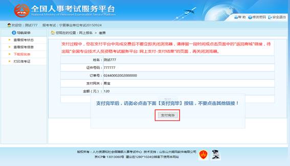 訂單確認無誤后,點擊“支付”按鈕,成功后再點擊“支付完畢”按鈕完成網(wǎng)上