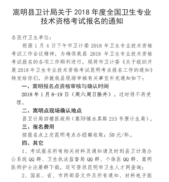 昆明市嵩明縣2018專業(yè)技術(shù)資格考試報(bào)名公告