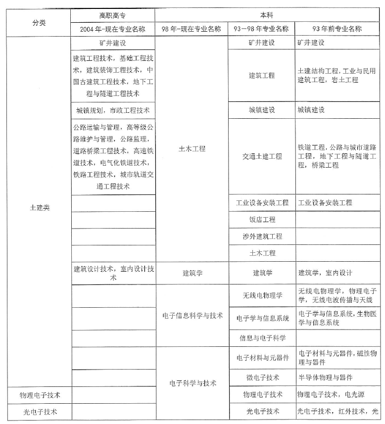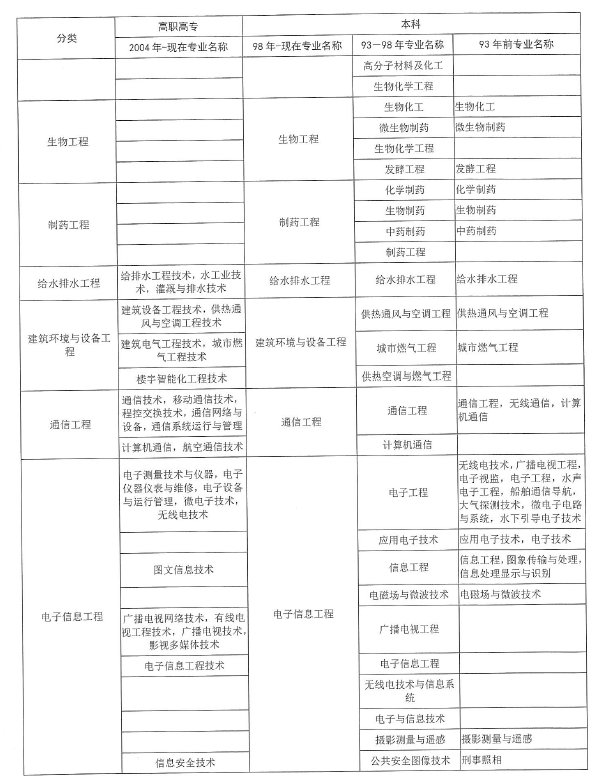 “工程類(lèi)或工程經(jīng)濟(jì)類(lèi)專(zhuān)業(yè)”對(duì)照表