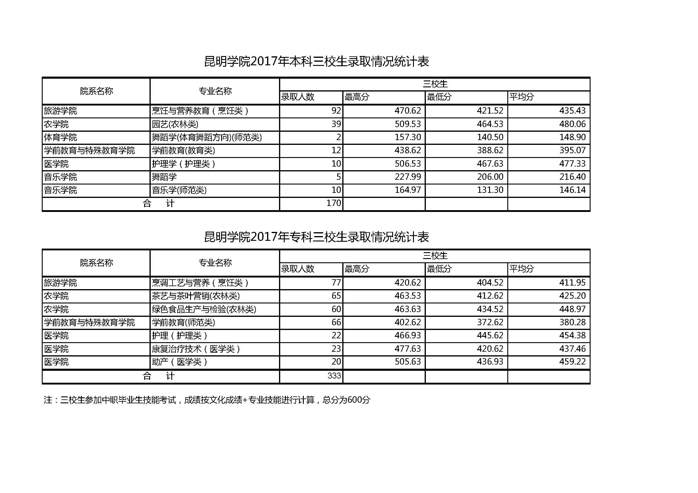 昆明學院2017年三校生錄取情況統(tǒng)計表