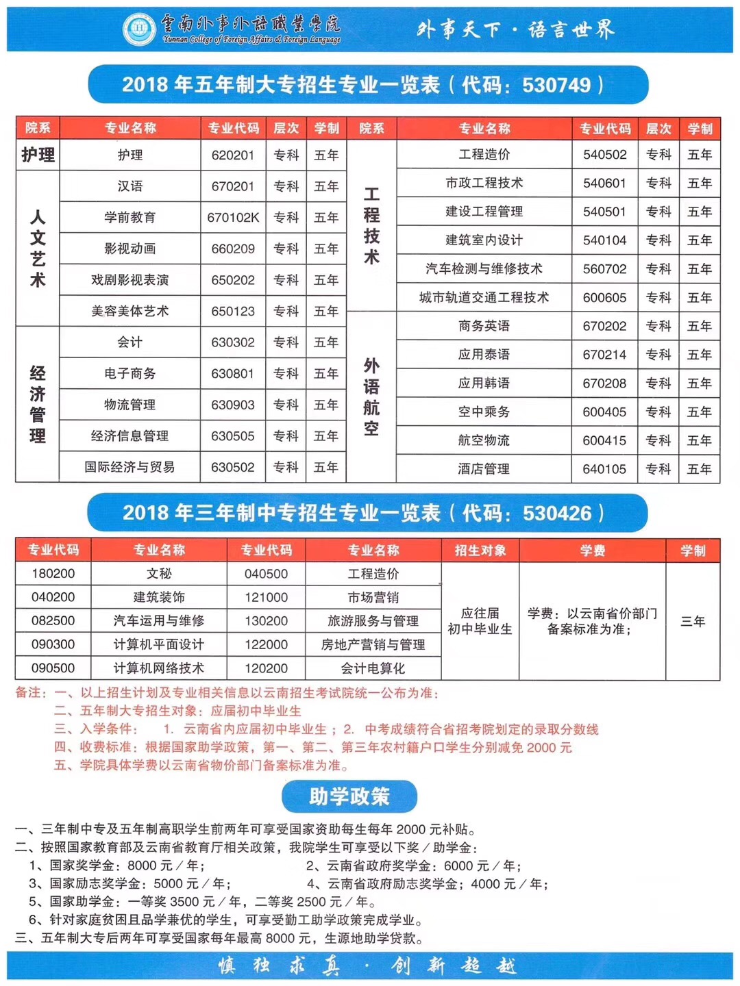 云南外事外語職業(yè)學院2018年中職招生簡章