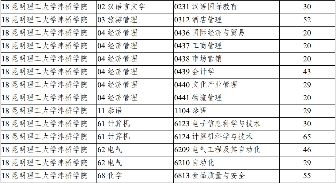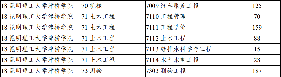 昆明理工大學(xué)津橋?qū)W院2018年專(zhuān)升本征集志愿計(jì)劃