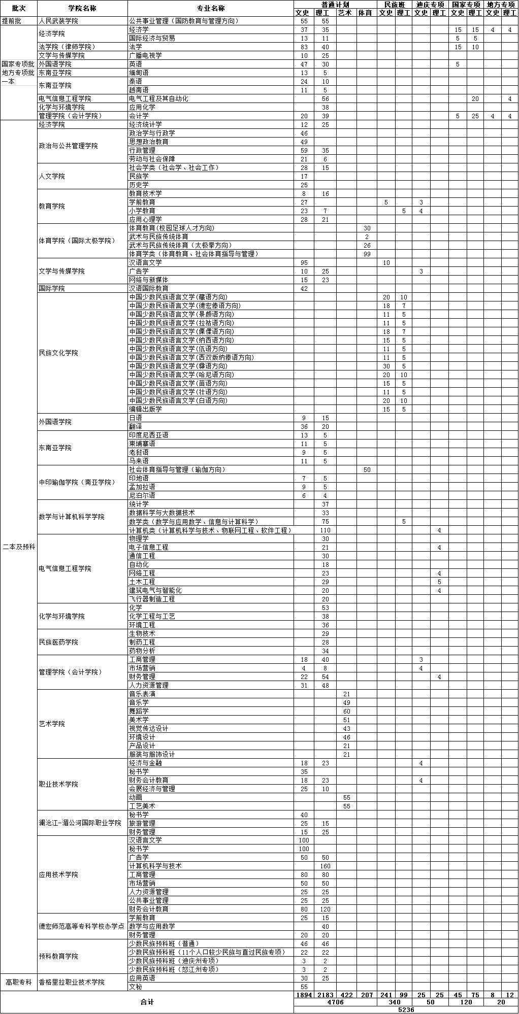 2022年云南省少數(shù)民族預(yù)科升學(xué)計(jì)劃表