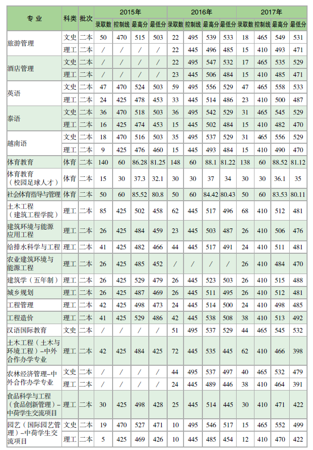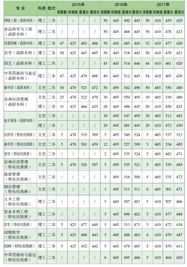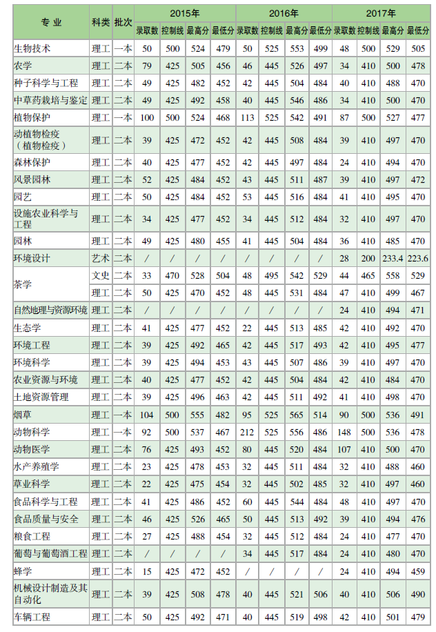 云南農(nóng)業(yè)大學(xué)2015-2017年各?。▍^(qū)、市)本科錄取分?jǐn)?shù)統(tǒng)計(jì)表