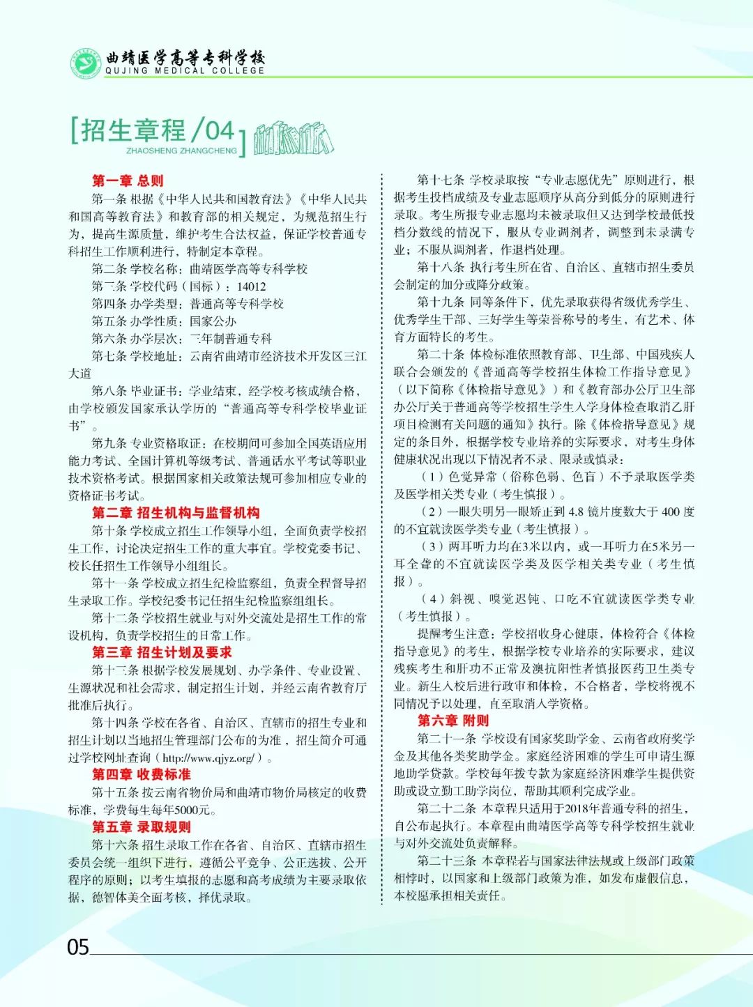 曲靖醫(yī)學高等??茖W校2018年招生簡章