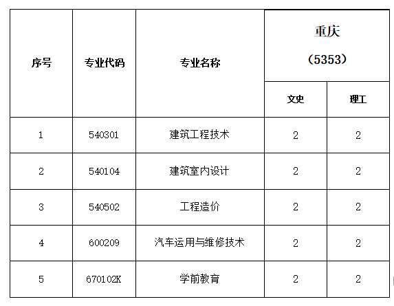 云南城市建設(shè)職業(yè)學(xué)院2018年高職(專科)重慶分專業(yè)計(jì)劃表