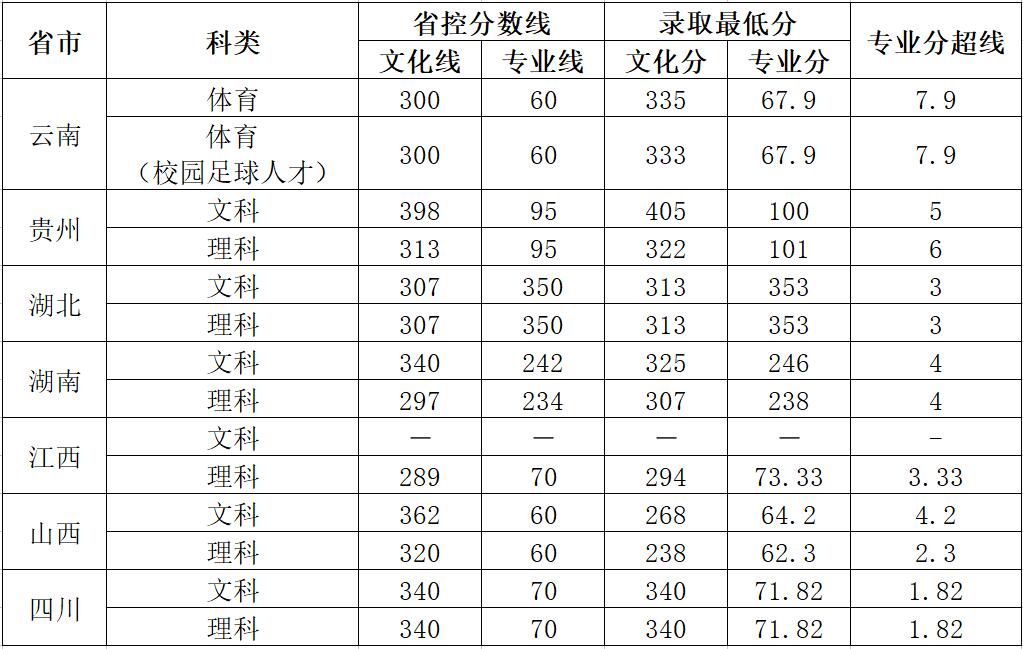 云南師范大學(xué)商學(xué)院2015-2017年體育類分省錄取最低分